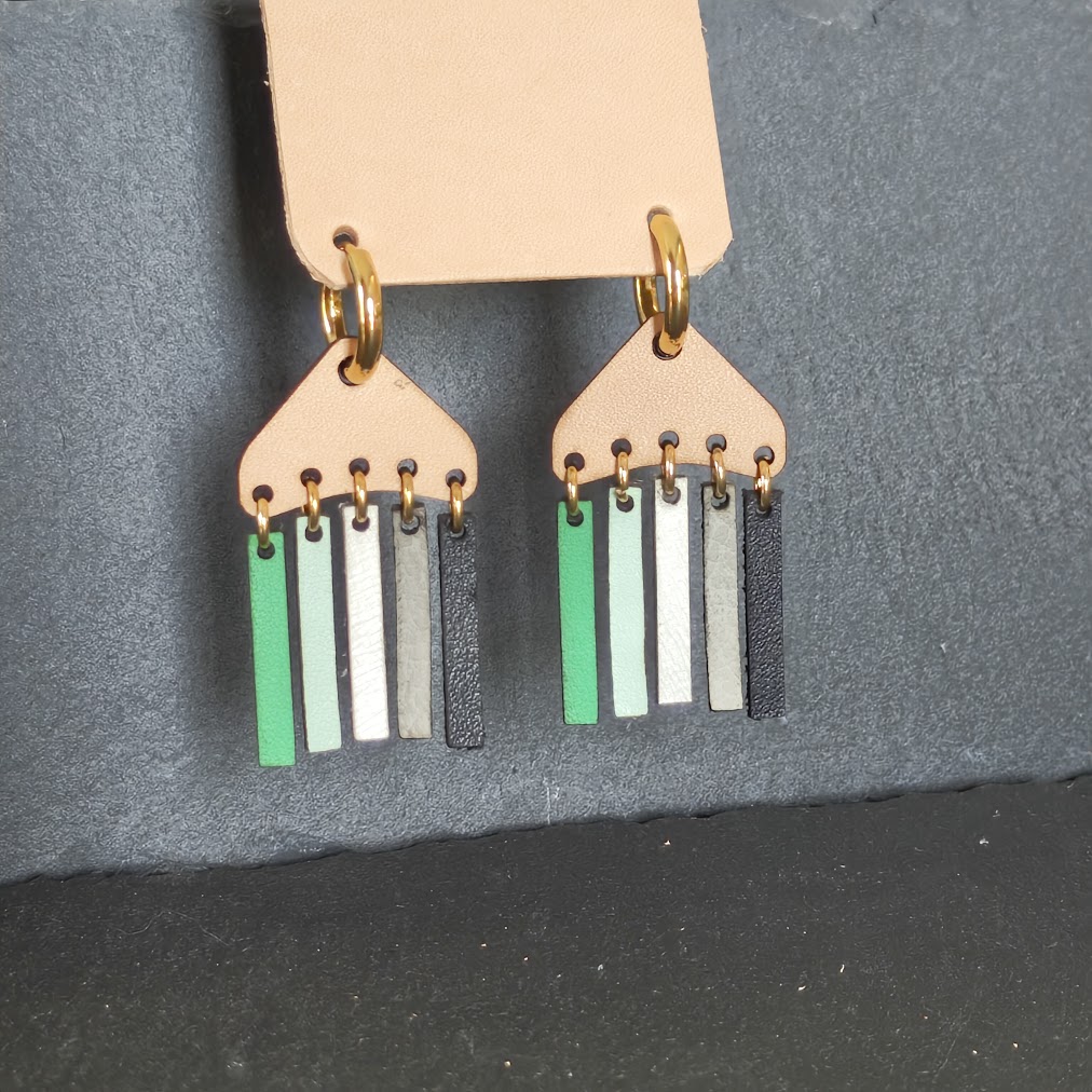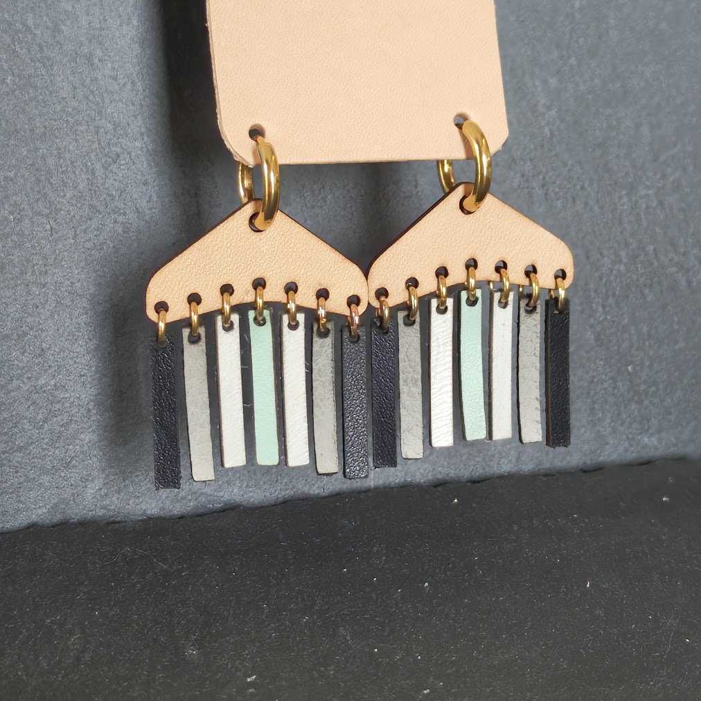 Conçues avec soin, ces pièces uniques sont entièrement fabriquées en chutes de cuir de qualité, offrant style à chaque porté. Chaque modèle est assemblé avec des anneaux en inox plaqué or, ajoutant une touche d’originalité à votre look.